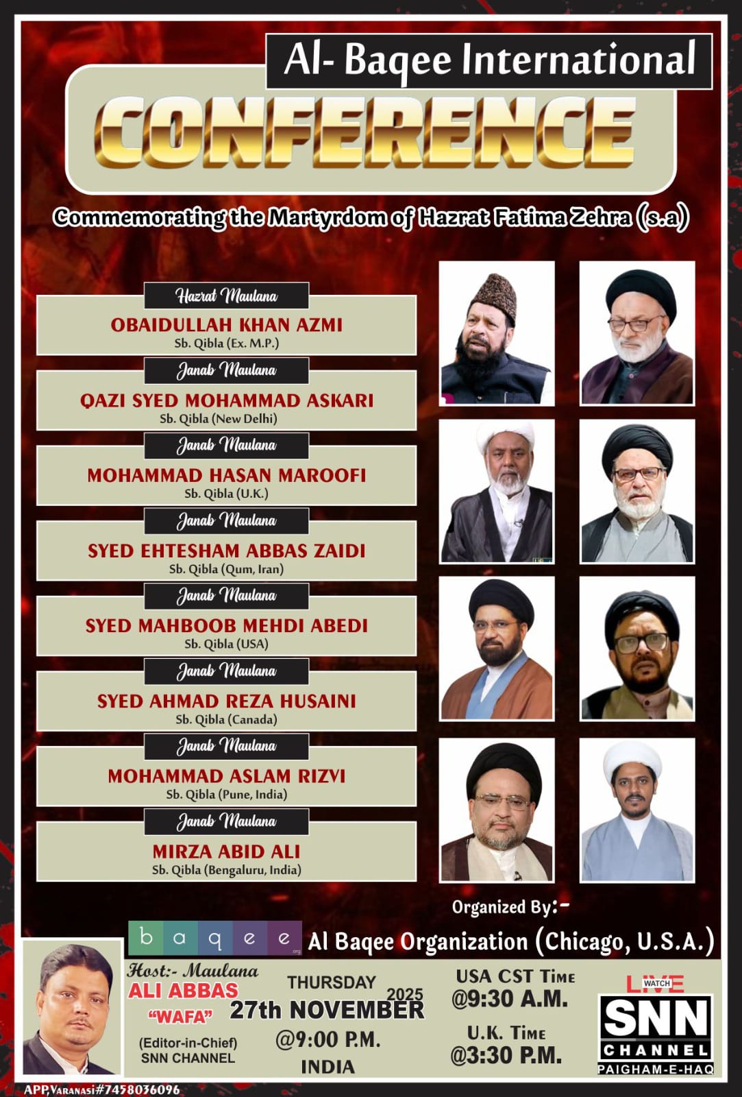 حسب دستور قدیم اس کامیاب کانفرنس کی نظامت ایس این این چینل کے ایڈیٹر ان چیف مولانا علی عباس وفا نے کی اور اس پروگرام کو کامیاب بنانے میں اہم کردار ادا کیا ۔